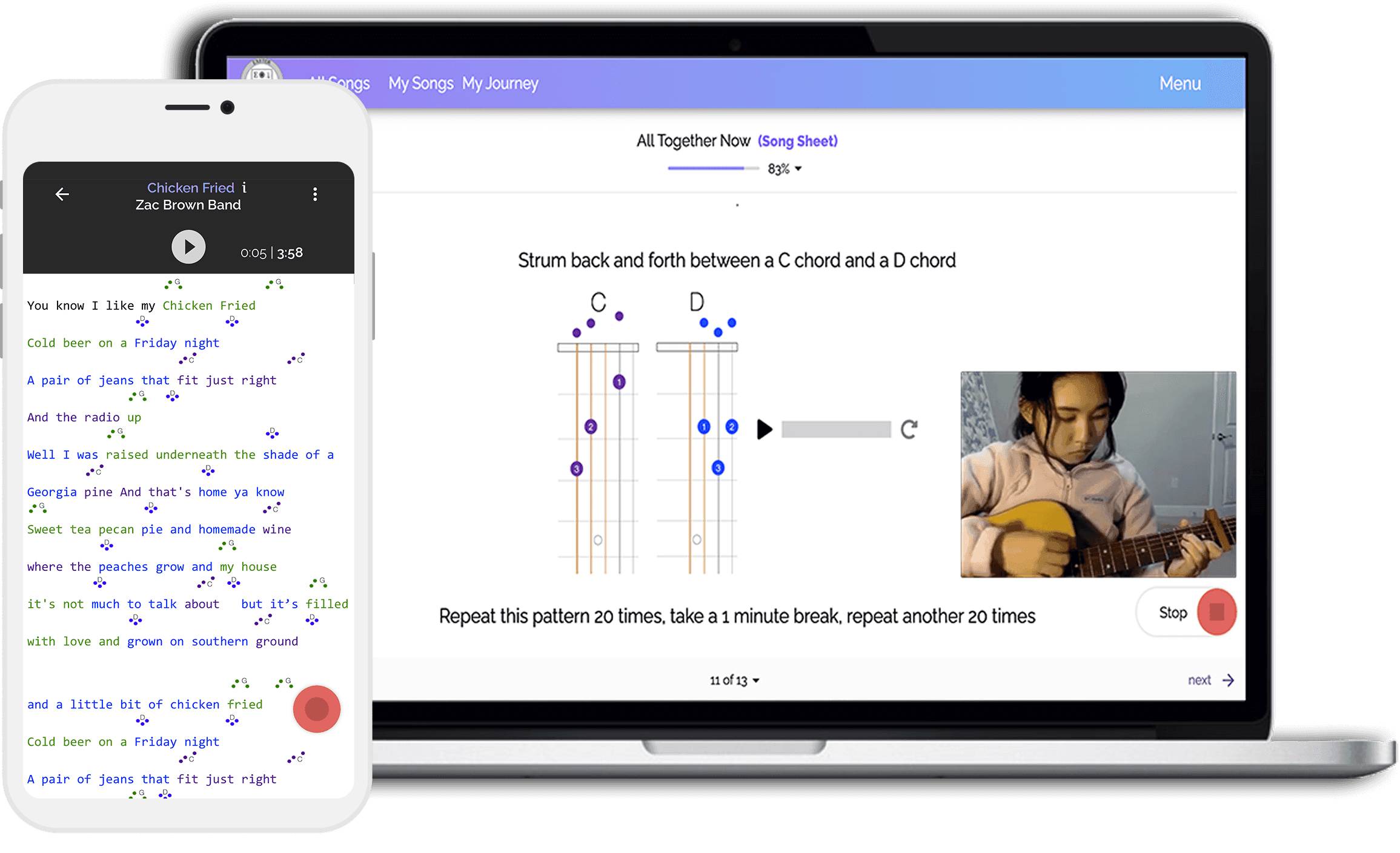 - Tracking Student Progress: See exactly what chords, songs, and skills your students are working on, how much they've practiced, and where they are struggling.