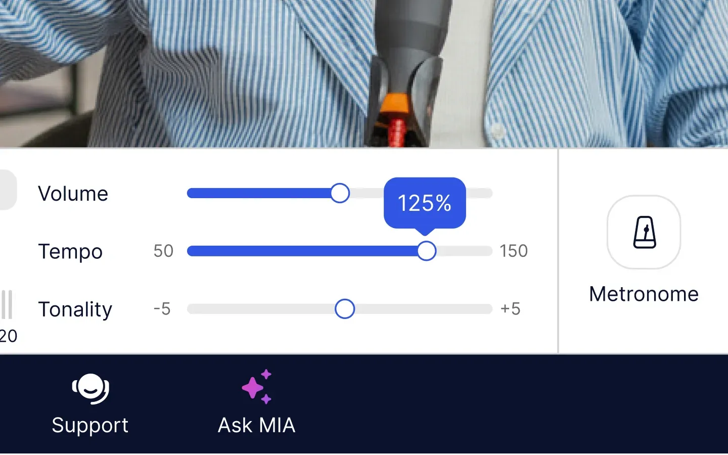 Make instant adjustments to tempo and pitch without ever leaving your MOOZ lesson. This saves time and allows you and your student to stay focused on the lesson without navigating other apps.